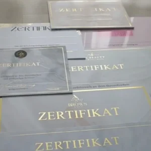 Unsere glänzenden Zertifikate sind mehr als nur Papier. Sie sind Ausdruck von Wertschätzung und Anerkennung. Durch den hochwertigen Foliendruck erhalten Ihre Zertifikate einen exklusiven Glanz, der Blicke auf sich zieht.